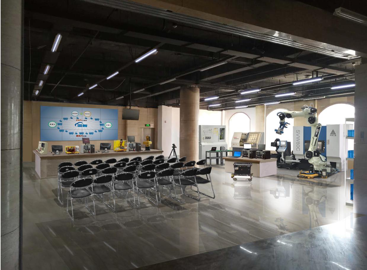 利用公司现有技术优势结合智能制造教学需求,将皿智的智能实训工业级网络化数控机床、机械臂、注塑机、工业机器人、云平台、金属3D打印机、大数据计算中心、注塑机、自动物料小车、操作终端(多平台实训终端、智能实训教学型小机床、智能实训数控原理实验台、智能实训数控维修实验台)等设备连接,通过平台进行派单、接单、设计、分析、存储、智慧制造,系统且集中的展示工业4.0,实现智慧制造可视化。